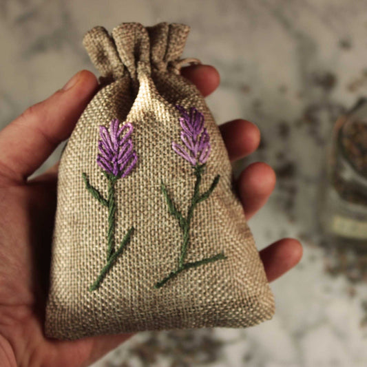 Saquito de LAVANDA de Lino y Cáñamo, Bordado a Mano
