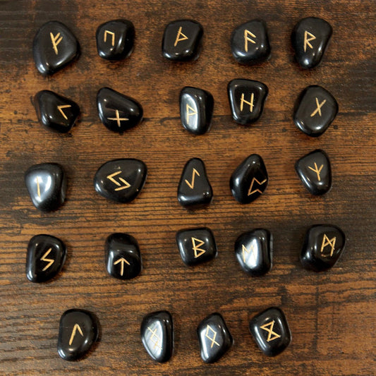 Runas Vikingas Futhark de Ágata Negra – Kit Completo